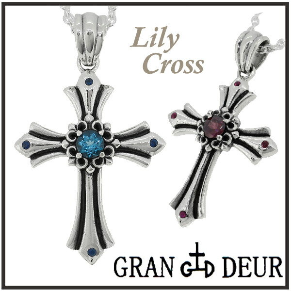 GRAN DEUR リリィ クロス ロードライトガーネット ルビー ブルートパーズ サファイア シルバー ネックレス チェーン付きペンダントトップ シルバー925 メンズ 十字 天然石 ブランド プレゼント 人気