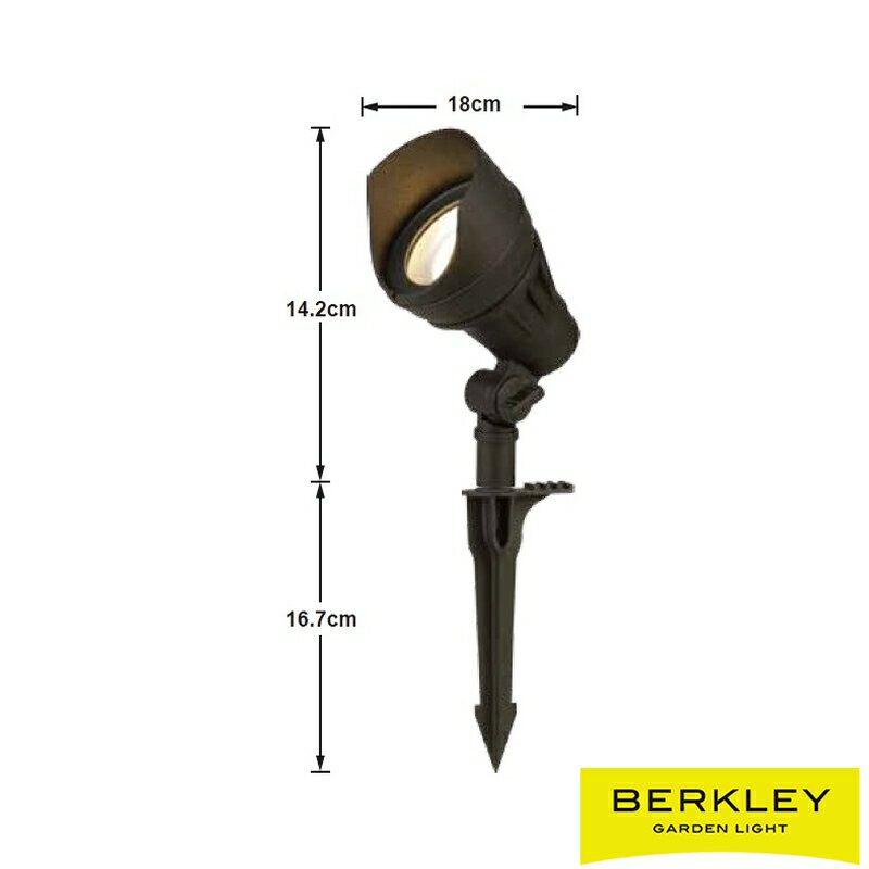 ◆仕様 13.3W ブラック色 アルミダイキャスト製 H142×D180mm 540ルーメン 70° 3000K LED交換不可 防雨型 スパイク付属 マウント使用可