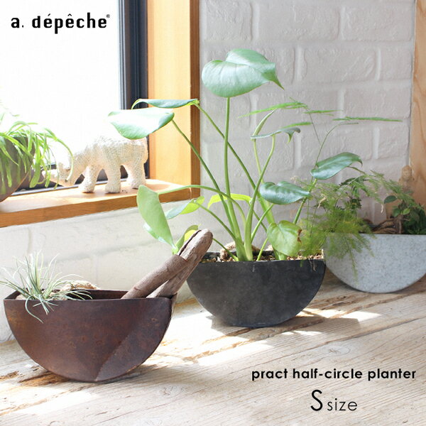壁掛け 植木鉢 カバー 『プラクト ハーフサークル プランター Mサイズ』 プランター おしゃれ メッキ ブリキ 屋内 ポット カバー インテリア 観葉植物 植栽 吊り下げ 吊るす ハンギング ロープ 半円形 壁面収納 ディスプレイ 金属