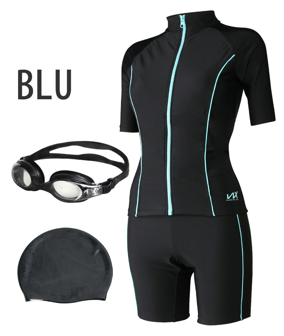 【型番】VA-5154 【セット内容】 ・フィットネス水着 ・スイムキャップ ・スイムゴーグル 【特徴】 ・女性用フィットネス水着 長めのボトムスでふとももをカバー。